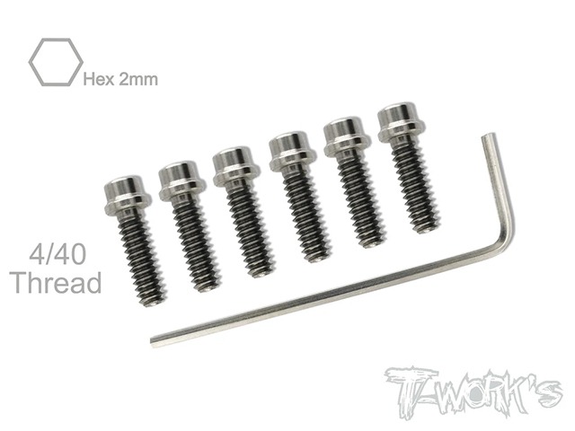 T-Work's TSS-440-C チタン製キャップヘッドスクリュー・2mm HEXソケット【4-40 x 7/16インチ/6本入 】