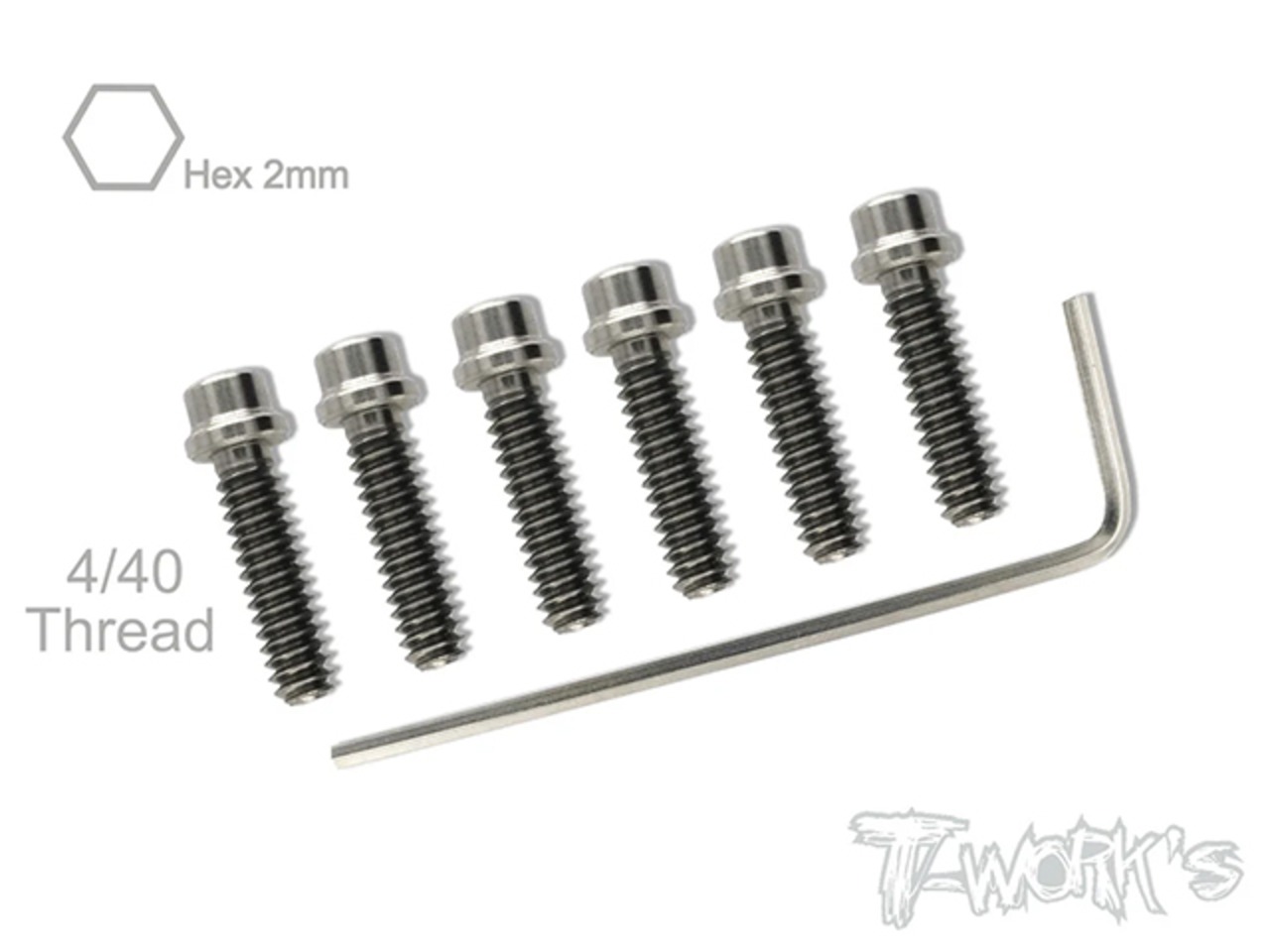 T-Work's TSS-440-C チタン製キャップヘッドスクリュー・2mm HEXソケット【4-40 x 7/16インチ/6本入 】