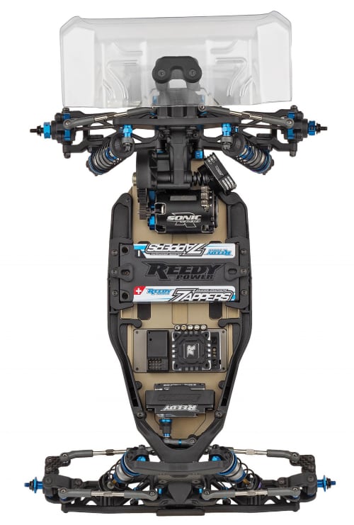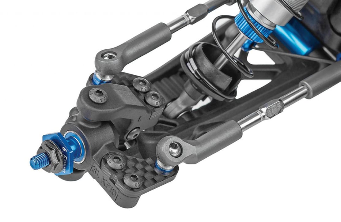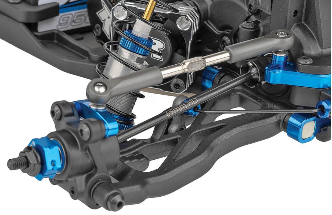 新設計ギヤデフ、ヒンジピンブレース付きフロントサスペンションアーム、硬めスプリングおよび高減衰設定(ハイグリップ路面向け)のショックを標準装備し、高い旋回性能と安定したトラクション性能を発揮します。