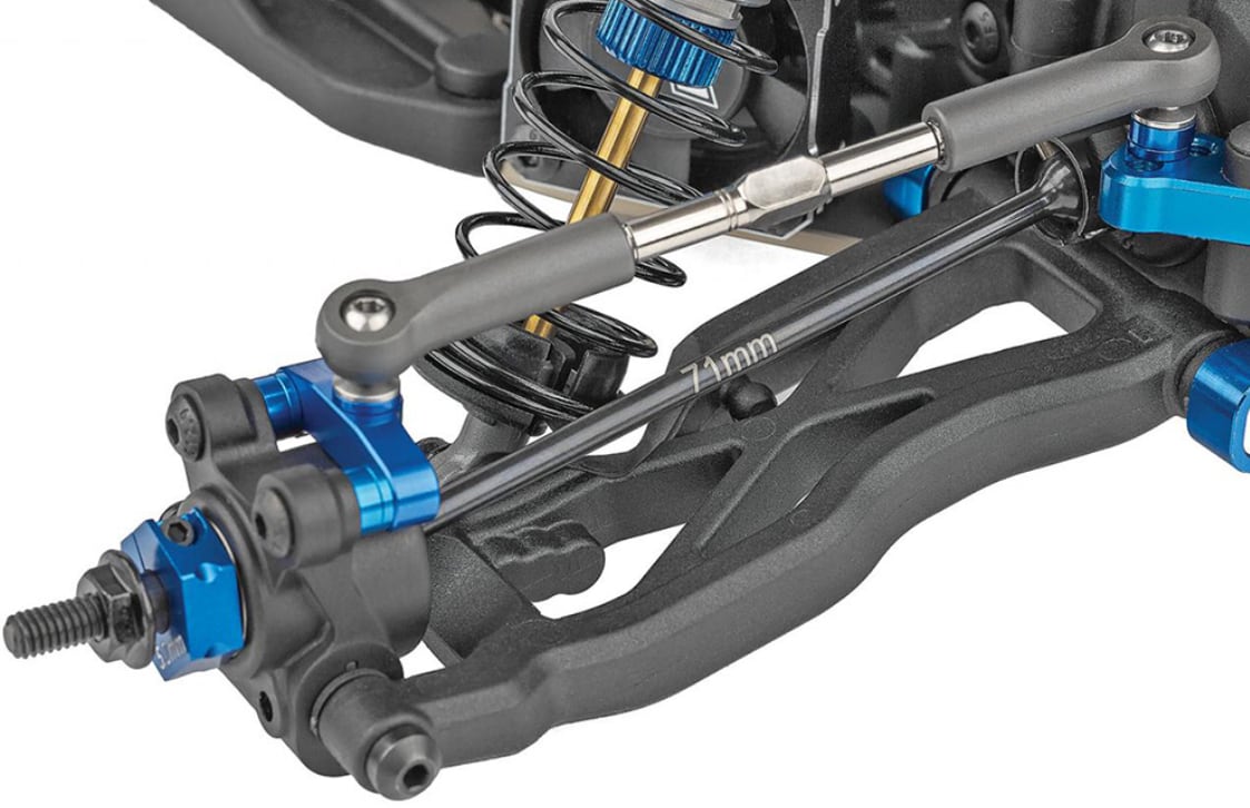 RC10B7.1Dは、新設計のロングアーム・サスペンションジオメトリー、重量集中型エレクトロニクスレイアウト、KPI(キングピンインクライン)調整式ステアリングブロック、そしてシャーシ全体にわたる高いセッティング自由度を特徴としています。これらの革新により、グリップ性能とコーナリングスピードのポテンシャルが向上し、より速いラップタイムとスムーズなドライビングフィールを実現しています。