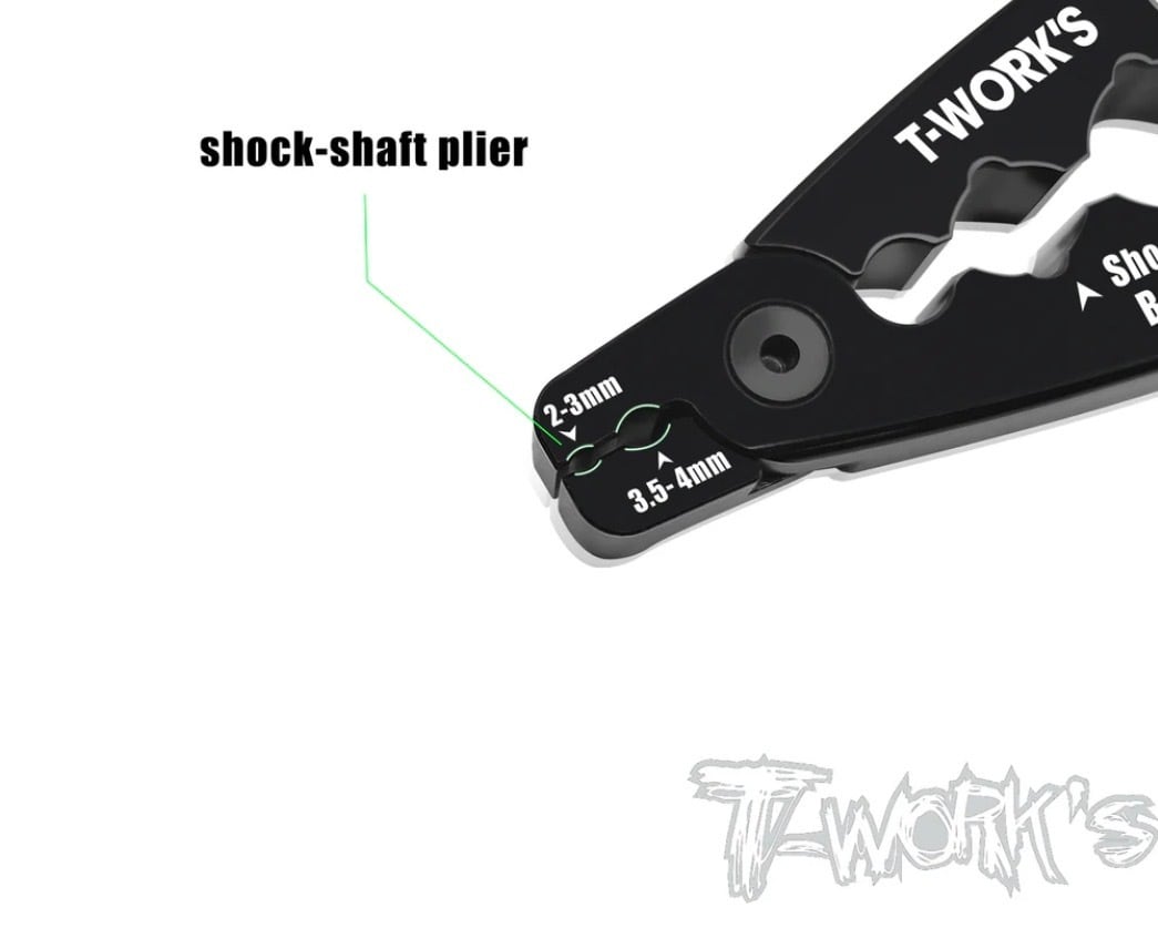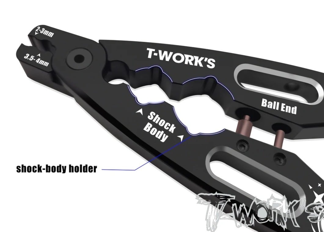 2〜3mm、3.5〜4mmのクランプ形状を備え、ショックシャフトを確実に保持して作業が可能です。