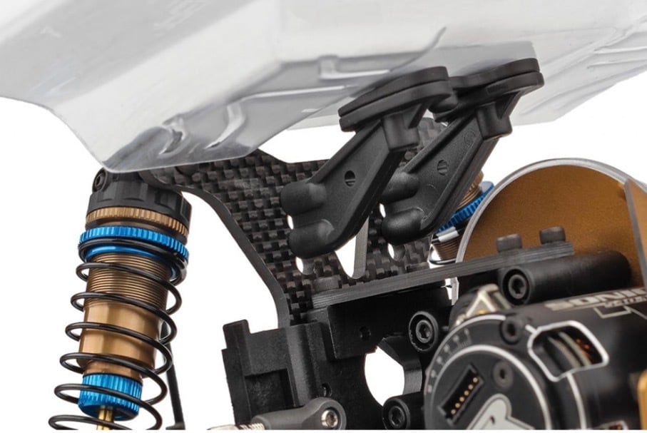 ビッグボアショック、12mm六角ハブ、キャプチャードヒンジピンなどを採用し、クラシックなRC10のスタイルを維持しながら、現代レースに対応した性能を発揮します。